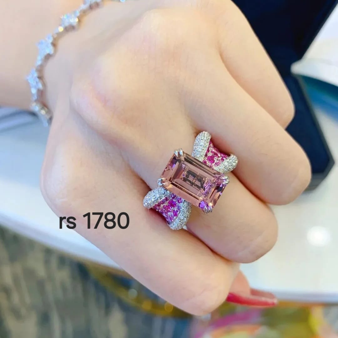 / Pink Cubic Zirconia Ring – Adjustable