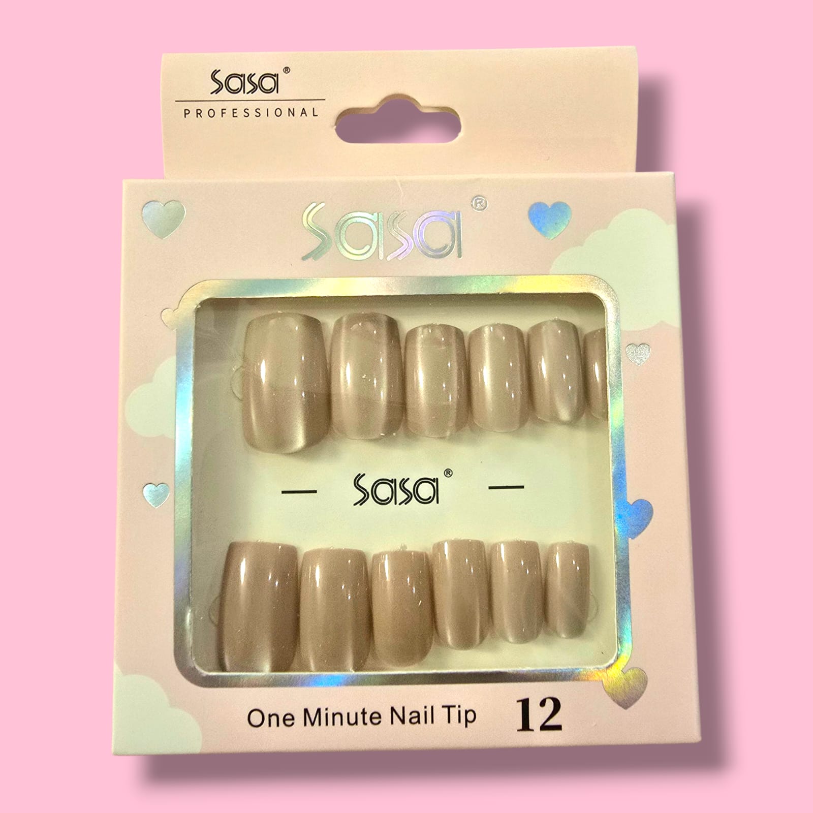 The package contains 12 artificial nails and include nail stickers for application.